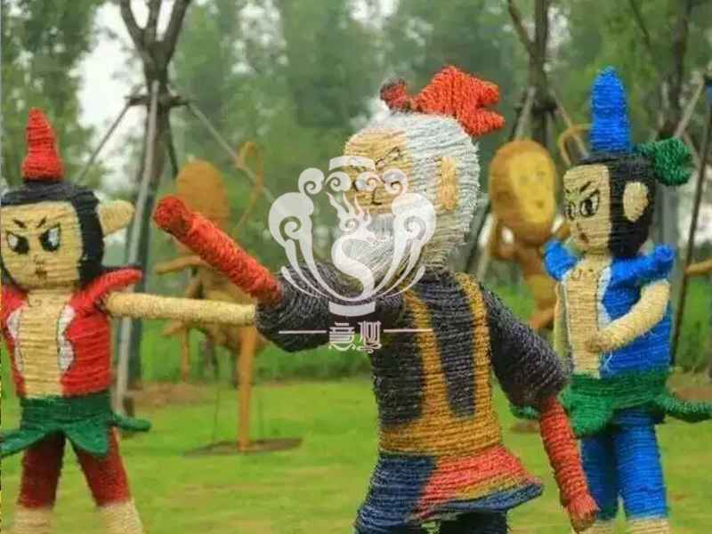 現在的精致稻草人藝術通常是由專業美術老師的造型放樣,然后由焊工師傅焊接出立體造型造型,然后以稻草或者稻草繩為材料編捆制作而成。
