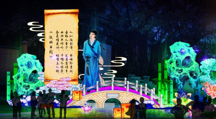 進入景區后,一組《山莊魅景》組燈,在吸納了該區域的文化特色之后,區域重點以花卉為主要元素,以山莊景色為依托,營造出繁花似錦的景象,以此展現出隱賢山莊文化的深厚和獨特。